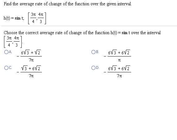 Feb 24, 2021 · finding average rate of change of a function on a specific interval. If you're seeing this message, it means we're having trouble loading external resources on our website. What is the formula for finding the rate of change? Find the average rate of change of $$$ f\left(x\right)=x^{2} $$$ on the interval $$$ \left1,3\right $$$. We'll use the formula for average rate of change:
